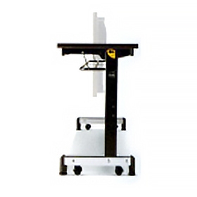 天板の回転に連動してキャスターが上下する「シンクロトップ機構」を世界で初めて開発。使用時はキャスターが上昇しテーブルはしっかり固定され、天板をたたむとキャスターが接地して可動できる画期的な機構。抜群の安定感と機動性により、使い勝手が追求されています。