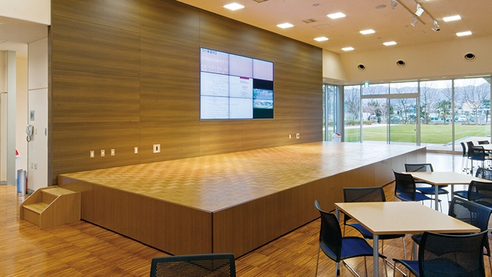アイステージWF は、ボタン1つで設置、収納ができる電動ステージです。ホールや体育館の多目的な利用を可能にでき、活用目的が広がります。従来、仮設ステージはその都度組立てられていましたが、アイステージWF の場合は仮設ステージと比較して設置・収納に要する時間と手間を大幅に短縮できます。また、既存の建築にも容易に取り付けができ講演会、発表の場、各種ショーなど本格的な催しに対応、地域文化の活性化を図ることができます。