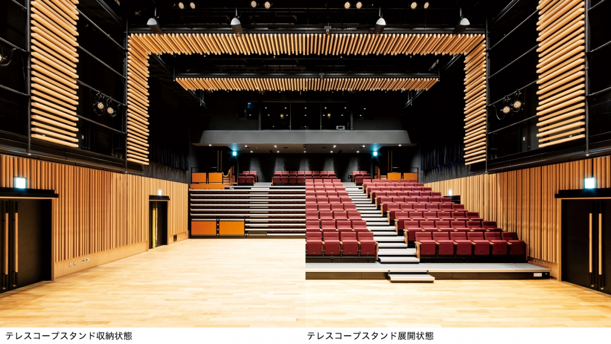 ホールの多目的な利用をテレスコープスタンドが実現します。