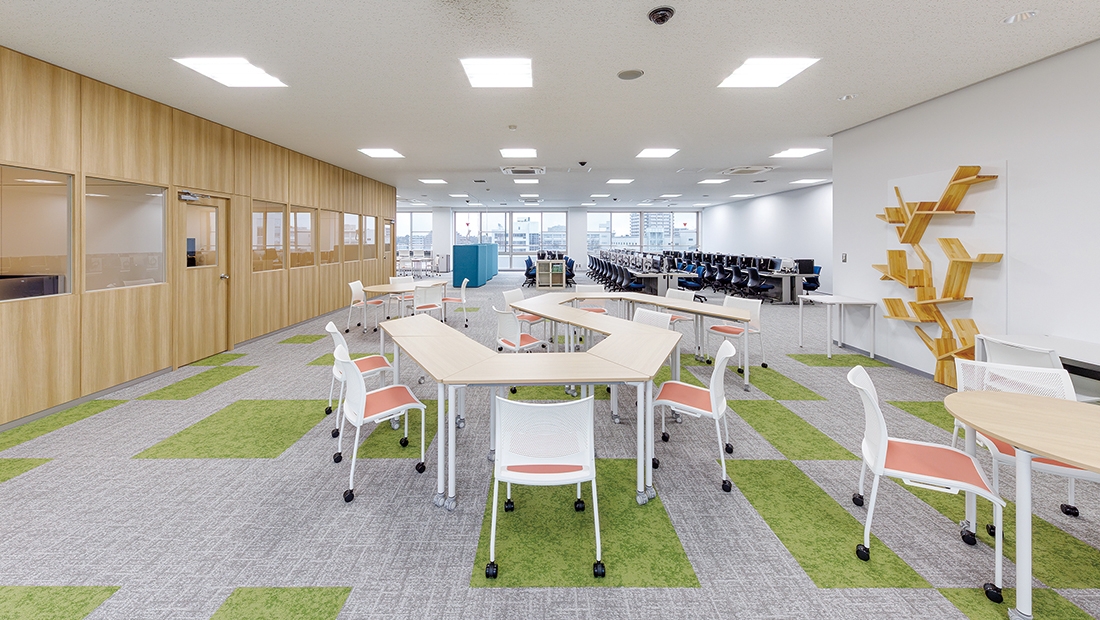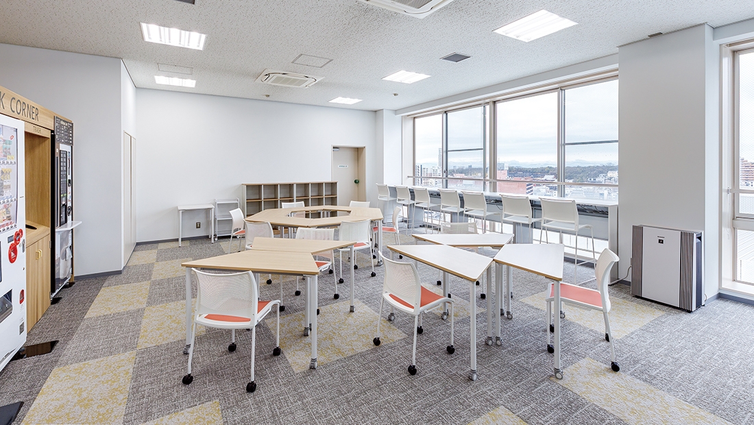 改修された学生控室は、移動性に優れたイス、テーブルが採用されており、利用用途に応じてフレキシブルにレイアウトを変更できるようになったほか、内装も一新され、学生がより使いやすい快適な空間になりました。