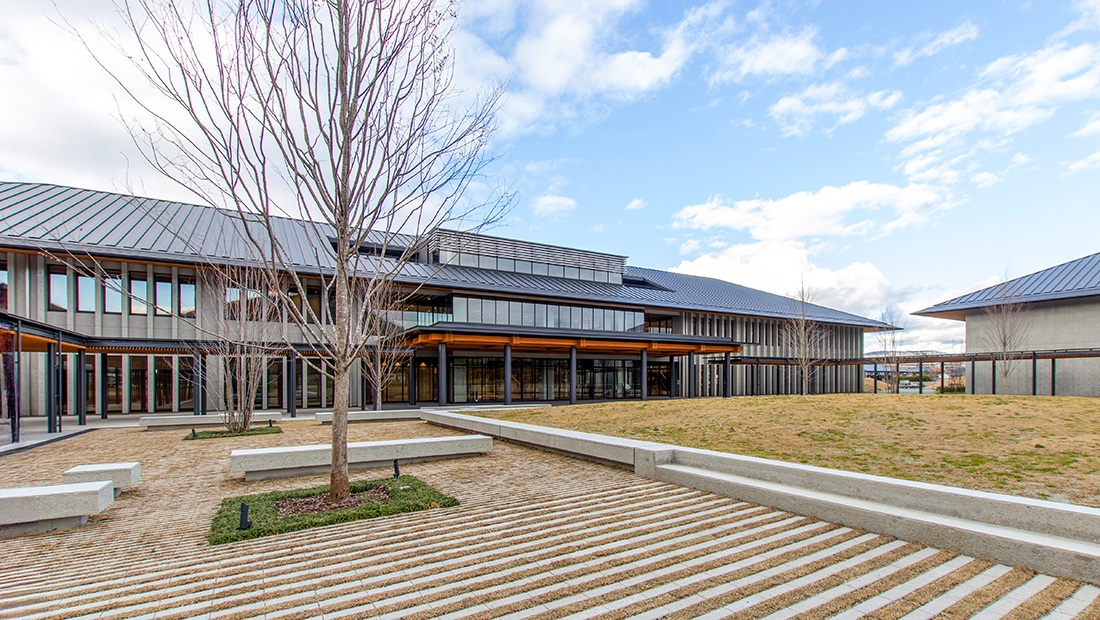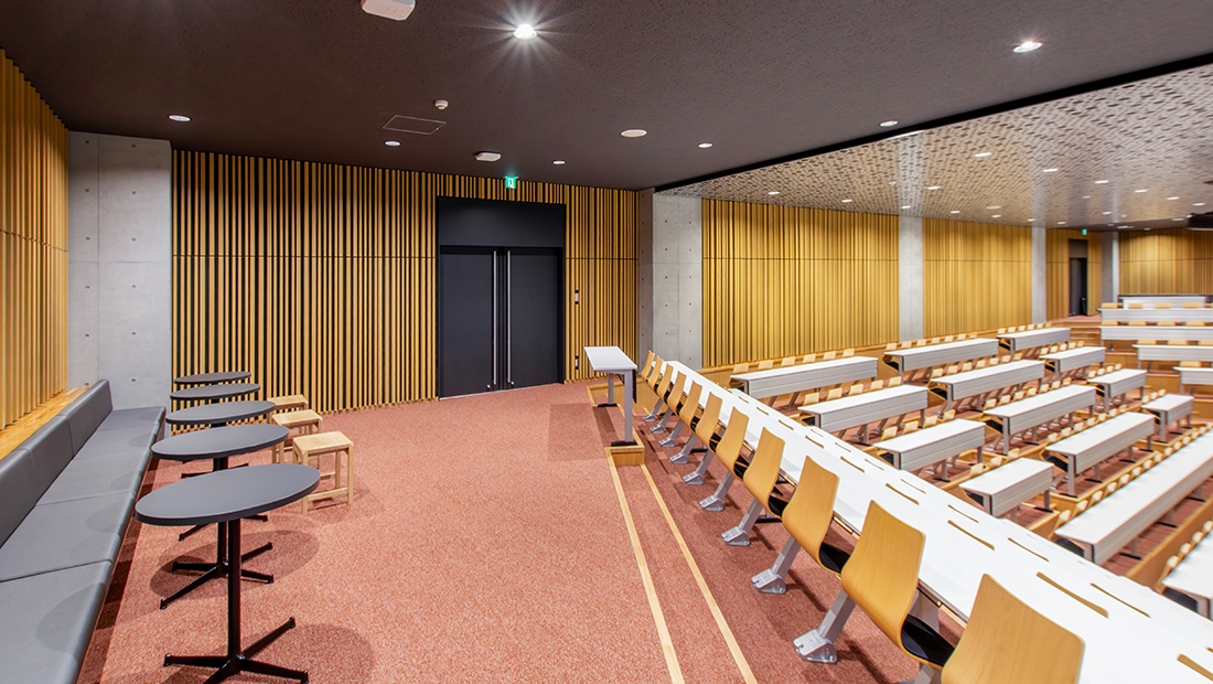 約12ヘクタールの広大な敷地に建設された新キャンパスは、医学科の1年生、看護学科の学生や大学院生の学びの拠点となり、多目的に利用できる収容人数600名の講堂や、医学・看護学の学習を支援する図書館などが備えられた「講堂図書棟」、250席ある医看合同講義室をはじめ、さまざまなラーニングスペースが備えられた「講義棟」などが整備されています。
