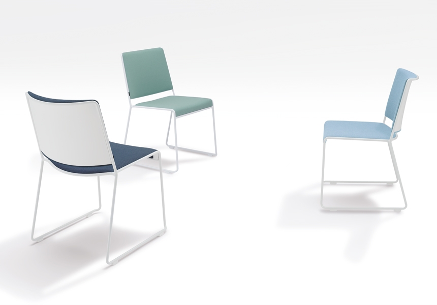 最新の極小曲技術でシンプルにまとめたフレームに、手掛け機能やシート張り、背裏木合板等展開し、多様なインテリアに対応する質感や均整のとれたスタイリングを精査することで、スタッキングチェアのニューノーマルを目指しました。