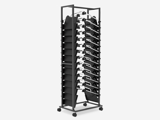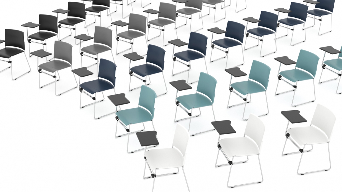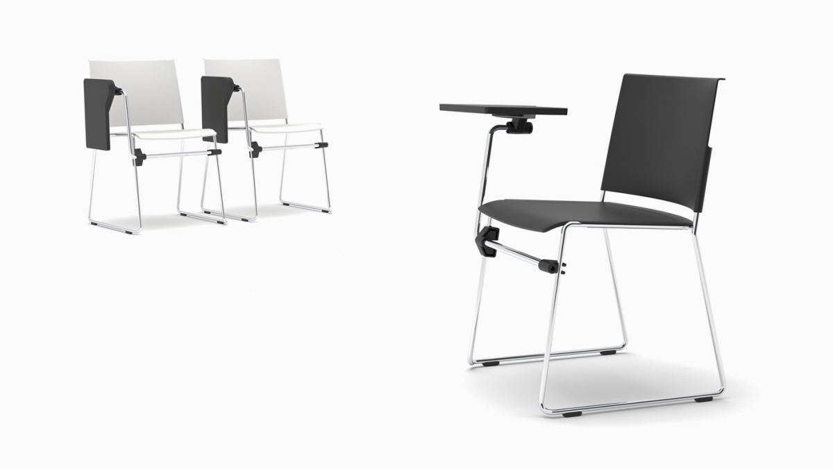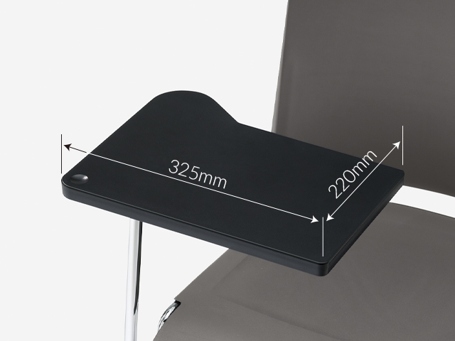 工具なしで着脱可能です。タブレットを使用しない時は、はね上げて回転収納もできます。(イスの連結時は回転収納不可)