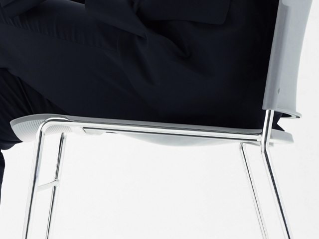 座はエラスティック樹脂成型品と再生樹脂成型品を被覆一体成型した2重構造。着座部のエラストマーシートが理想的な体圧バランスを形成して、クッションシートと同様な柔軟性と座り心地を提供します。