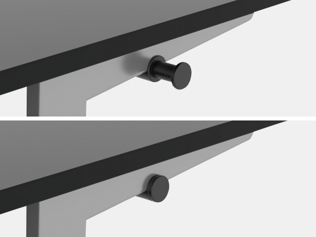 フックは天板受けの外側・内側に可動するスライド式なので荷物を掛ける位置を選択できます。(日本国特許出願中)