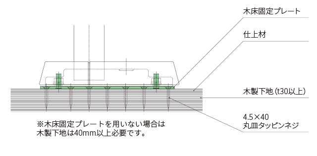 ※木床固定プレートを用いない場合は木製下地は40mm以上必要です。