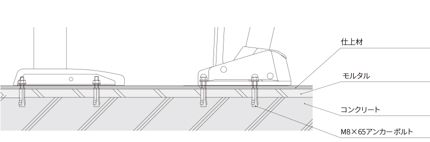 床の構造により、脚部の固定方法も異なります。基本的な固定方法は以下の通りです。