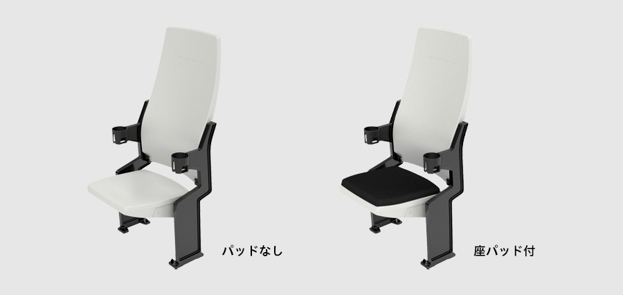 ABM-8000 スタジアムシート ABM-8000 スタジアムシート ABM-8000-FF スタジアムシート ABM-8000-WF 背・座バリエーション カップホルダー オリジナルデザインのカップホルダーを標準装備しています。 席番プレート(オプション) (左)座裏面 (右)背上面 座や背もたれに席番プレートを取付けられます。 詳しくはお問い合わせください。 列番プレート(オプション) 通路に面した脚部に列番プレートを取付けられます。 詳しくはお問い合わせください。 SPECIFICATION共通仕様 背・座 樹脂成型品 座パッド 布地張〈FTW〉 脚 アルミダイカスト 焼付塗装(BK・SV) カップホルダー 樹脂成型品 COLORカラー 背・座カラー BK ブラック LG ライトグレー 脚カラー BK ブラック SV シルバー CATALOGカタログ 総合カタログ