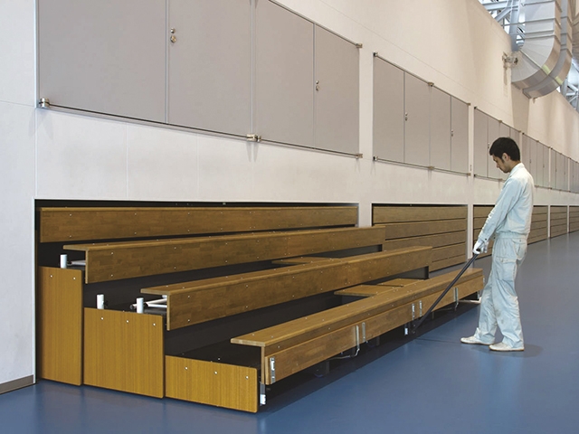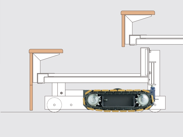 テレコープスタンドは動力部を最下段のデッキ下部に設置した自走駆動方式です。
