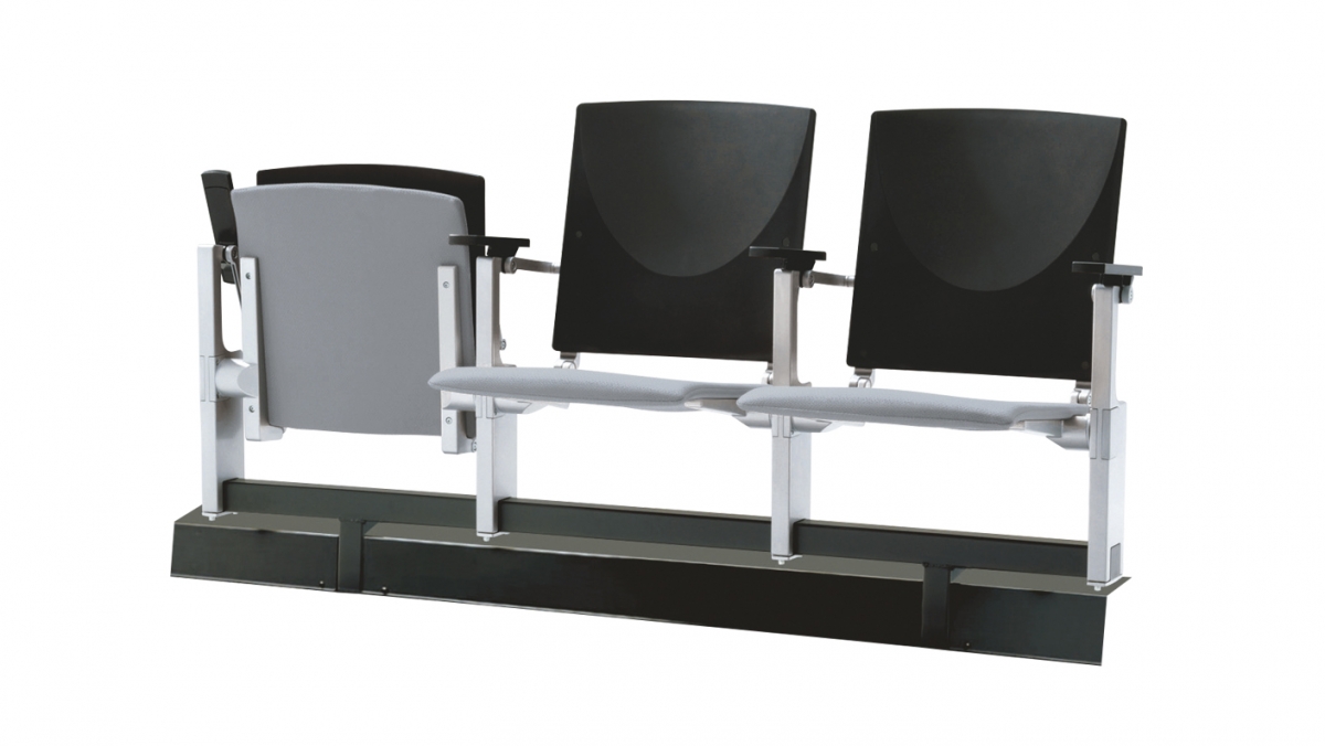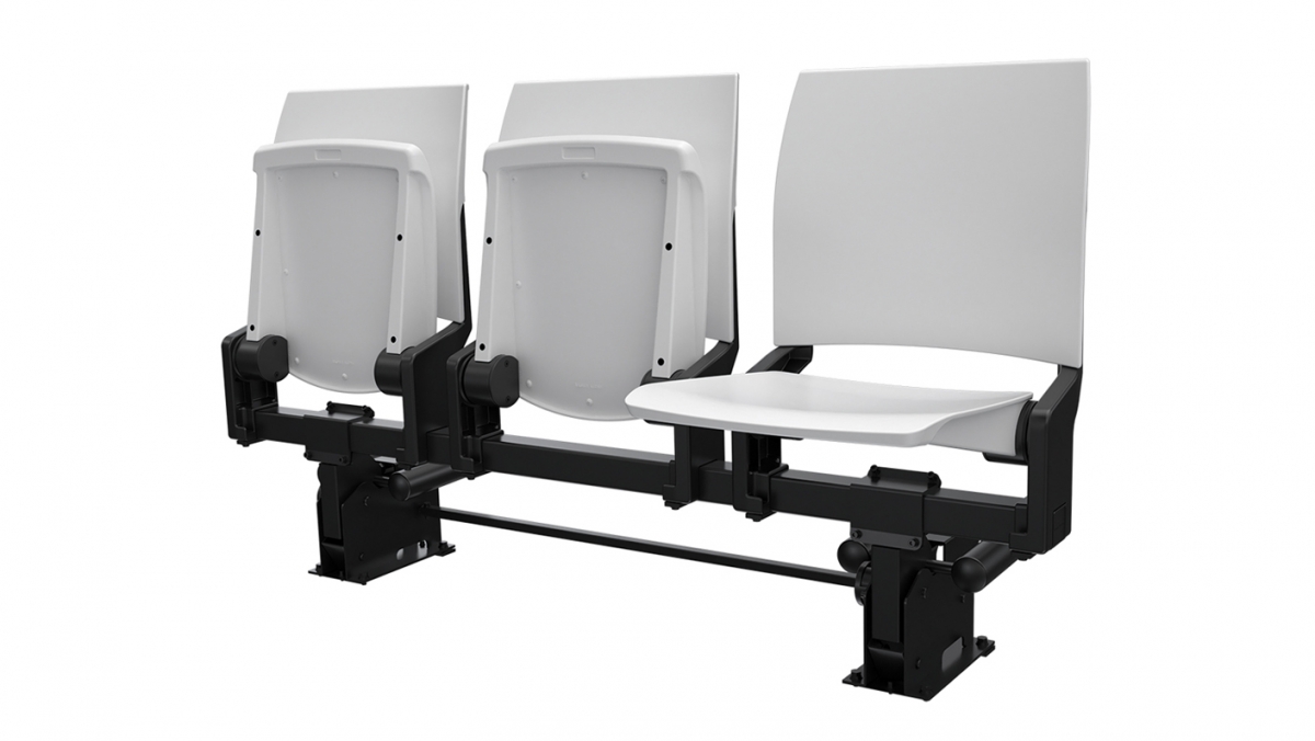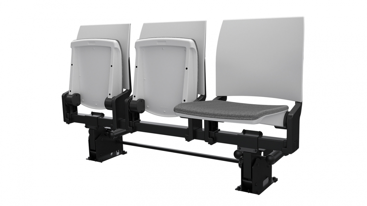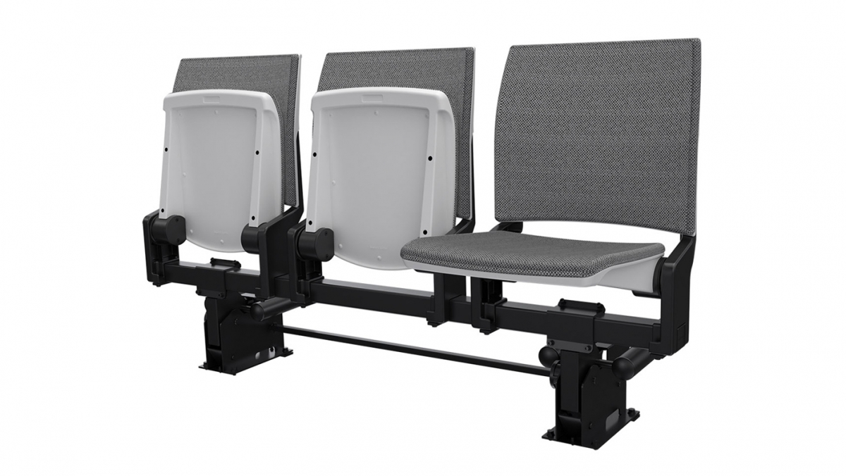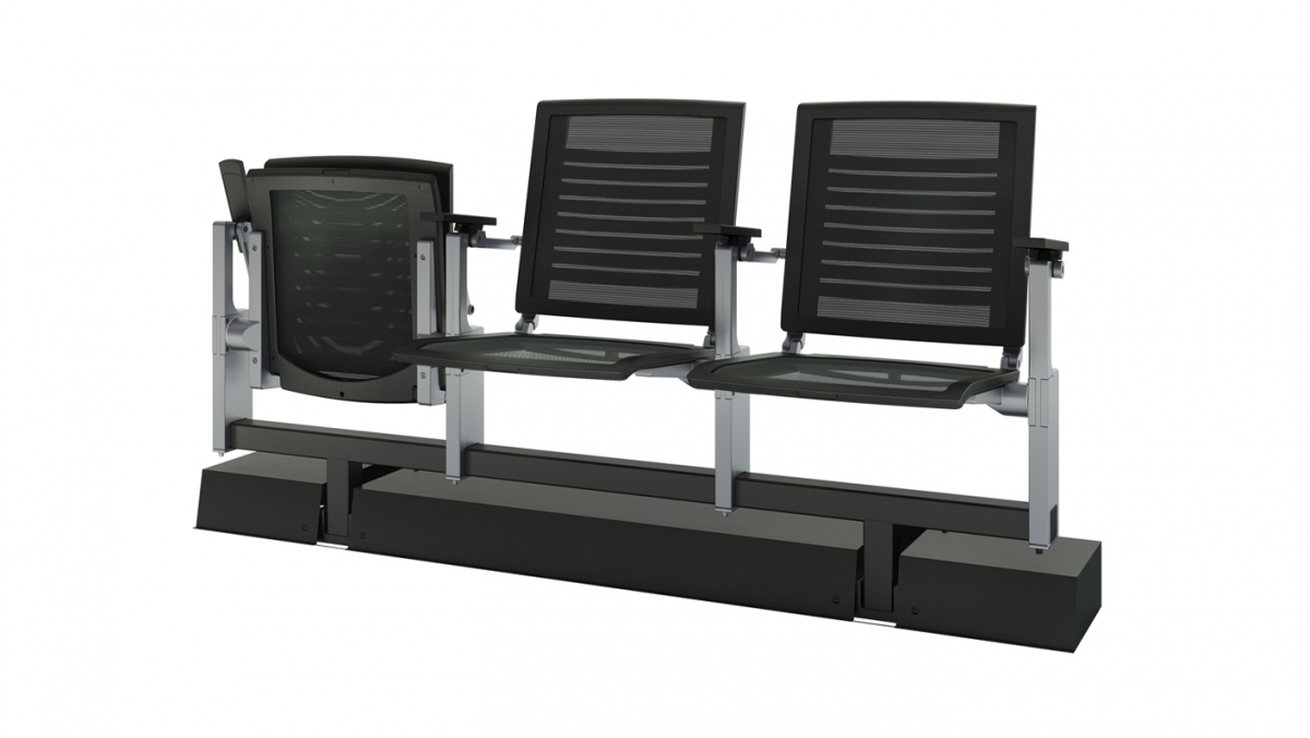09Mタイプの背もたれと座面には、オリジナルファイバーメッシュシートを移動観覧席の客席として世界で初めて採用。メッシュシートのテクスチュアと、背もたれ裏面のカバープレートが、軽快でクールな印象を与えます。