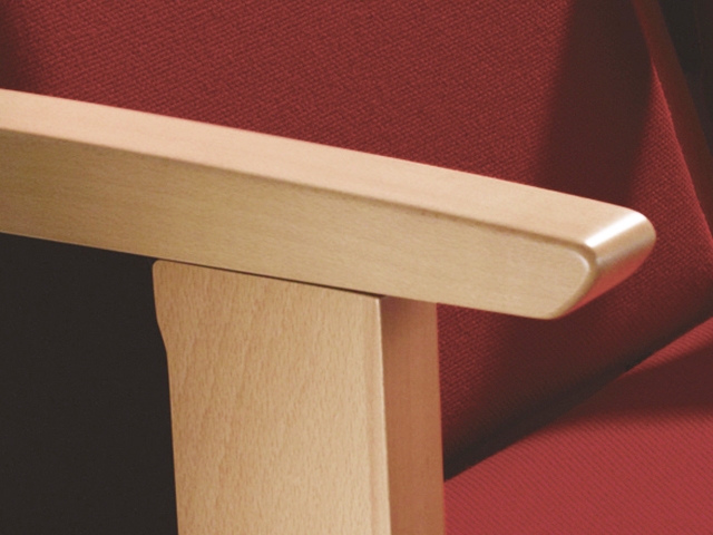背もたれと座面に用いられているPP樹脂(ポリプロピレン樹脂)は、耐衝撃性、耐摩耗性、耐熱性に優れており、不特定多数の人が利用するホール、体育館などの客席に適した素材です。また加工が容易なため、シャープでスタイリッシュなデザインが可能となりました。