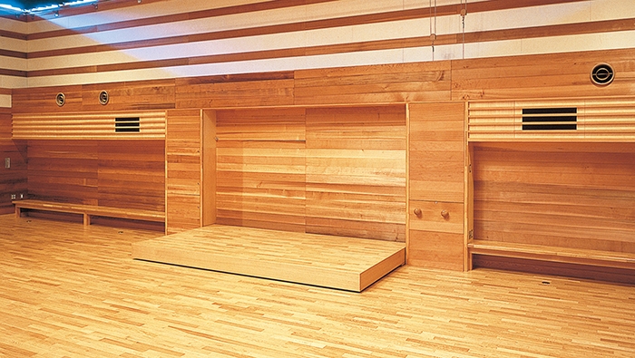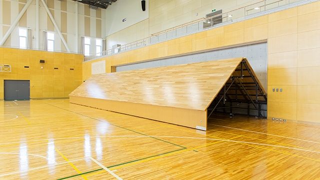 アイステージWF は、ボタン1つで設置、収納ができる電動ステージです。ホールや体育館の多目的な利用を可能にでき、活用目的が広がります。従来、仮設ステージはその都度組立てられていましたが、アイステージWF の場合は仮設ステージと比較して設置・収納に要する時間と手間を大幅に短縮できます。また、既存の建築にも容易に取り付けができ講演会、発表の場、各種ショーなど本格的な催しに対応、地域文化の活性化を図ることができます。