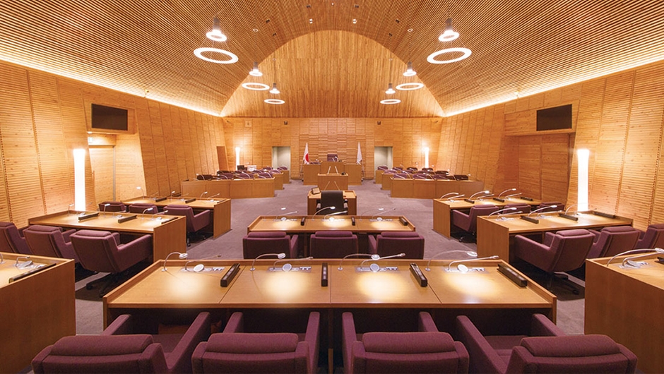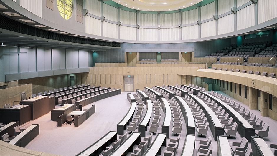 axona AICHIは従来の議会運営に適した家具の配置は勿論、住民参加型の討論会、あるいは講演会・セミナーなどにも対応可能な可動型の議場家具をご提案いたします。