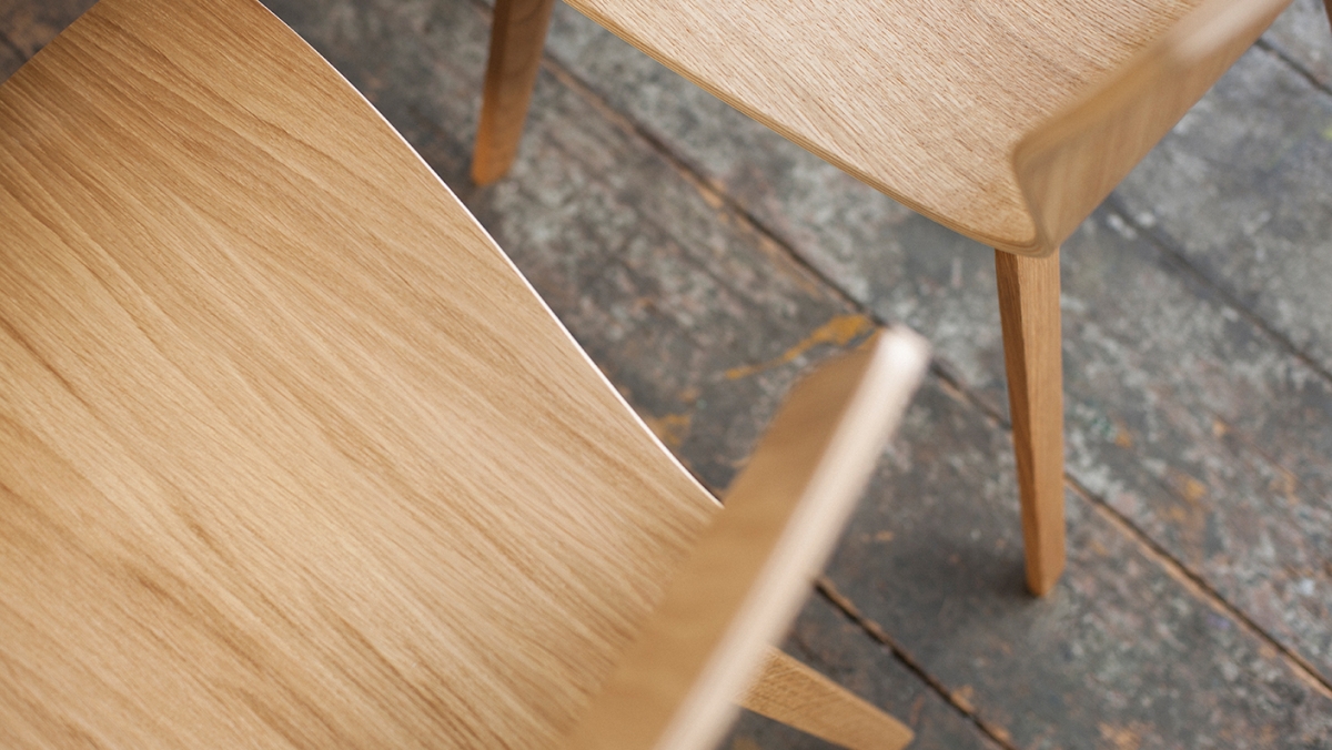 シンプルなラインで表現されたフォルムのBUTTERFLYシリーズのシェルと木製フレームで構成される、現代的な北欧デザインのチェアです。三次元カーブに成形されたシェルの自然なベンディングにより身体を優しく支えます。