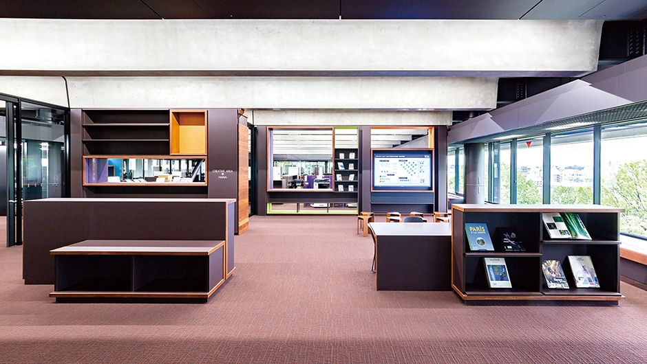 LEARNING COMMONS(図書館学術情報センター) 自律学習エリア/イス:ティーポ、入り口ゲート家具一式