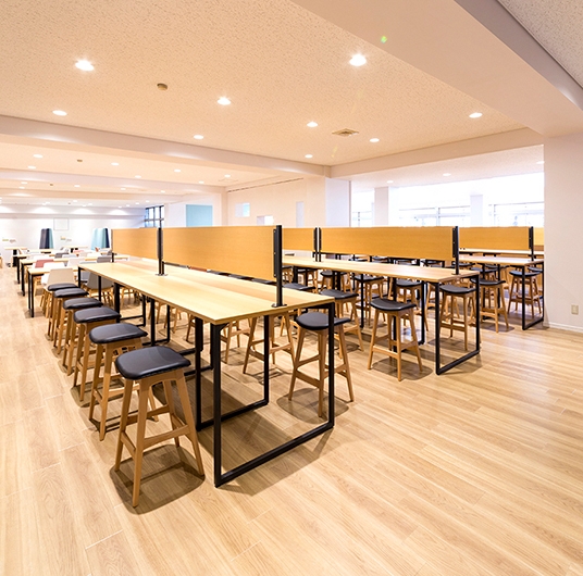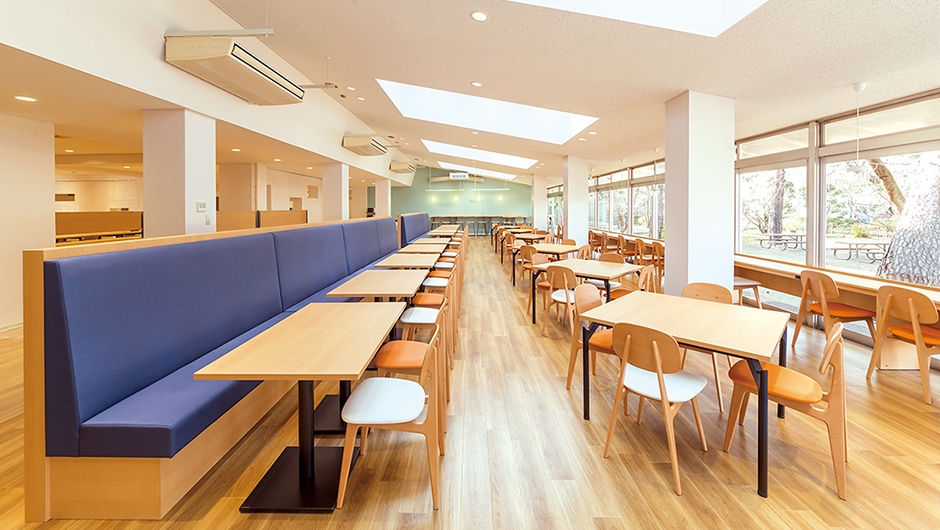 リニューアルされた食堂は、ナチュラルテイストのカフェをイメージしており、学生にとって居心地が良い空間となっています。