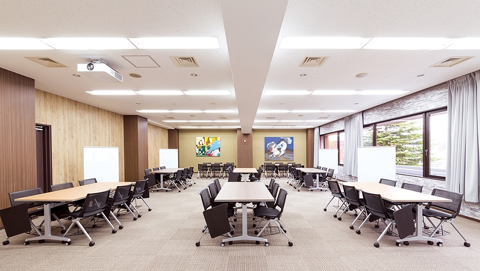 山梨学院大学では、40号館講義棟にある、これまで利用頻度が少なかったLL教室をアクティブラーニング教室へ改修しました。