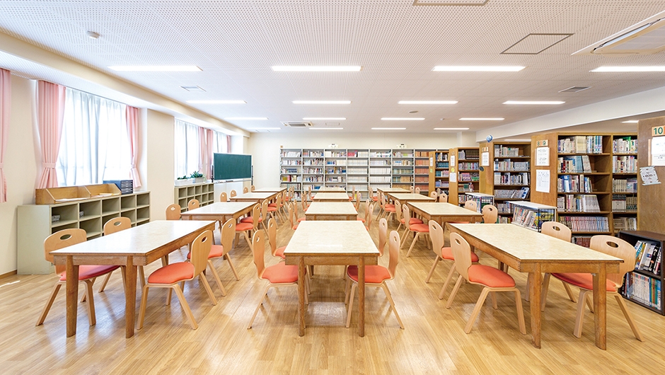 2018年2月に完成した「ノートルダムホール」の3階に、中高生共用の新図書館が誕生しました。スペースが限られた旧第一・第二図書館を一室に整備した新図書館には平湯モデルが採用され、木の温もりがある明るく開放的な空間へと生まれ変わりました。