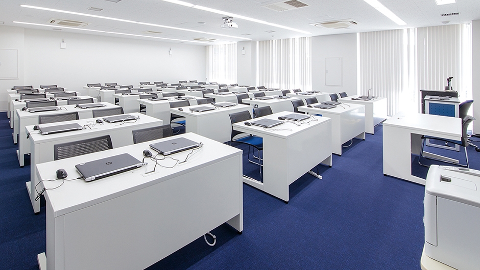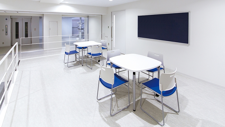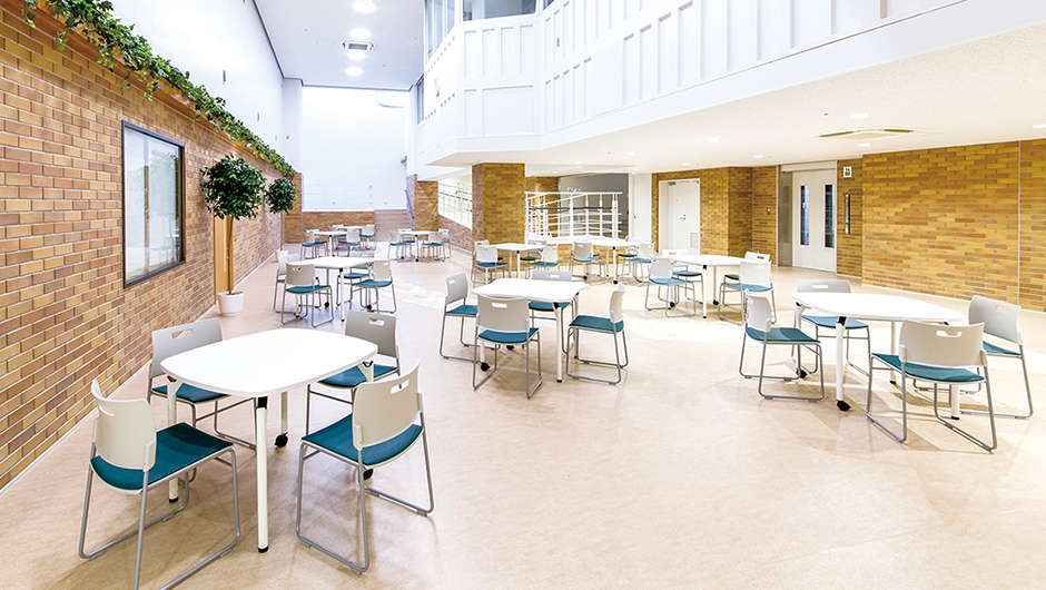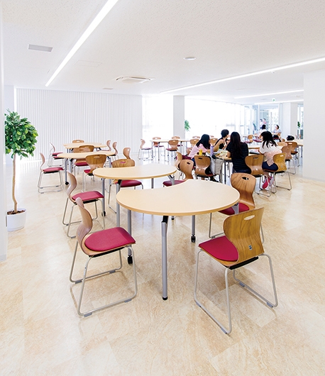 新しい校舎には、シミュレーション・ラボを備えた実習室、自己学習できるスペースがある図書館のほか、各階に寛ぎのスペースも設けられており、充実した学生生活を送ることができる環境が整えられています。