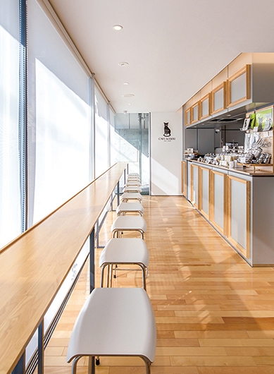 1階 「CAFE SOSEKI」/イス:ポーズバースツール(Magnus Olesen)、カウンターテーブル
