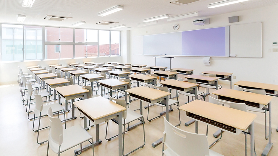 教室/イス:ペン、デスク:SCM-400、教卓:S-30、教壇、ホワイトボード、掲示板、プロジェクター、ロッカー、掃除用具入れ