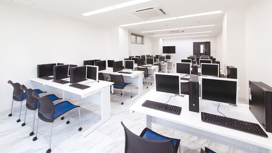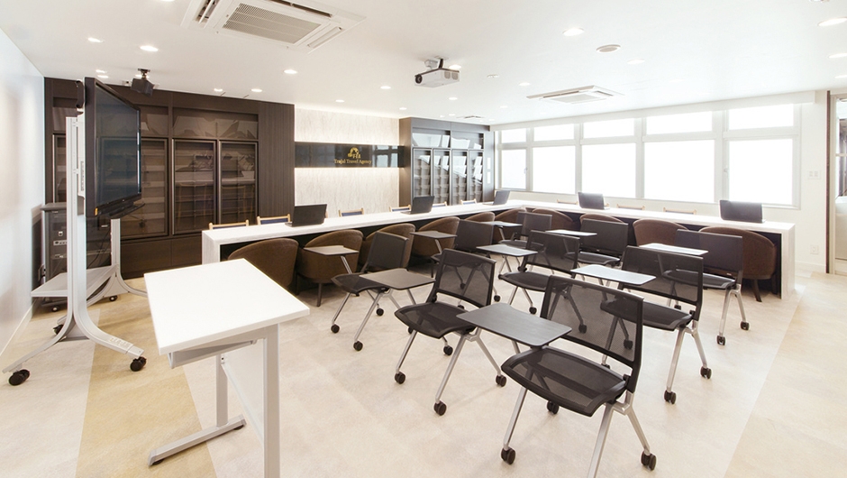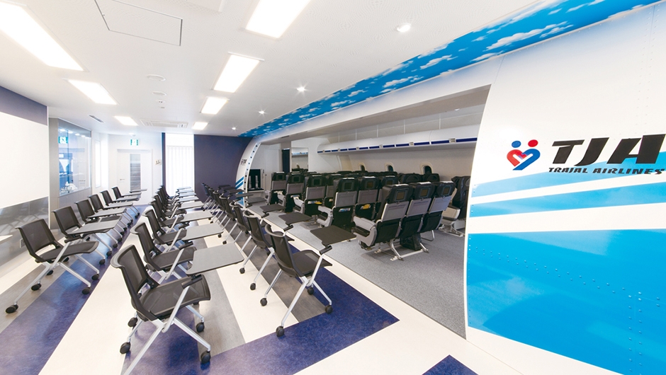 トラベルジャーナル学園大阪校の3つある校舎のうち、1号館の全面リニューアルが行なわれました。1号館には、観光業界や鉄道・エアラインで働く人材を育成する「ホスピタリティツーリズム専門学校大阪」と、2018年に新設予定の「大阪テーマパーク・ダンス専門学校」が併設されています。各校、各業界に特化したリアルな実習室・最新設備などが充実しており、実践的なスキルを学ぶことができます。