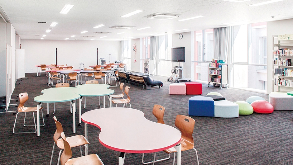 1~7階には全学共用の教室が設置され、講義用の机イスには天板面にコンセントが備えられています。7階のGLSラーニング・コモンズは、主に国際教養学部が利用するスペースです。