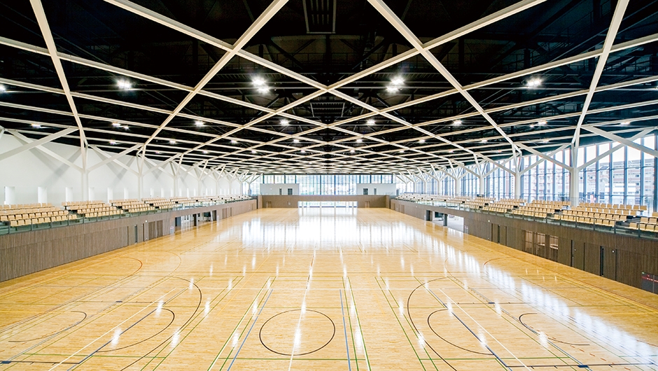 九州産業大学は2020年に迎えた創立60周年の記念事業の一環として、スポーツ複合施設「大楠アリーナ2020」を建設しました。