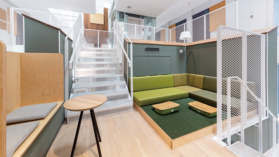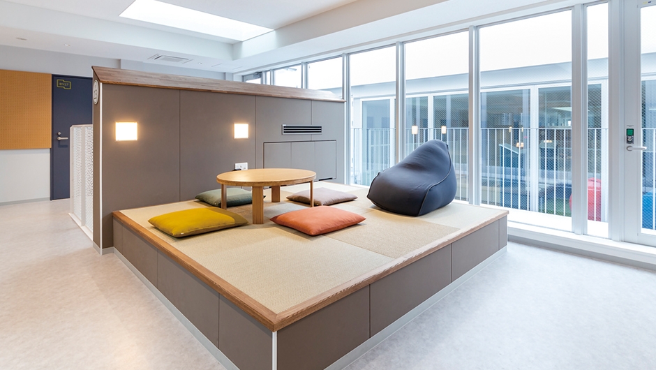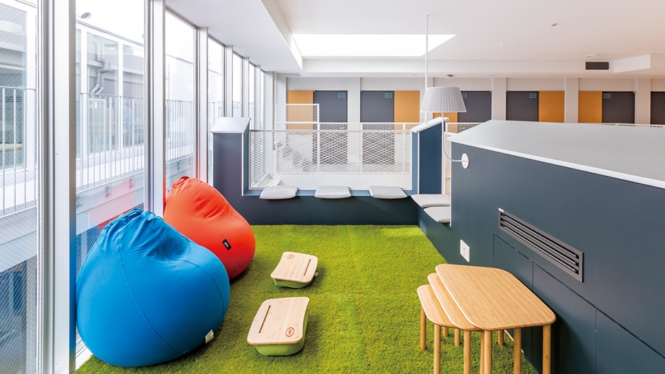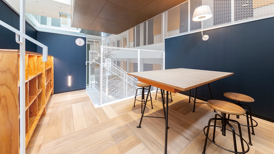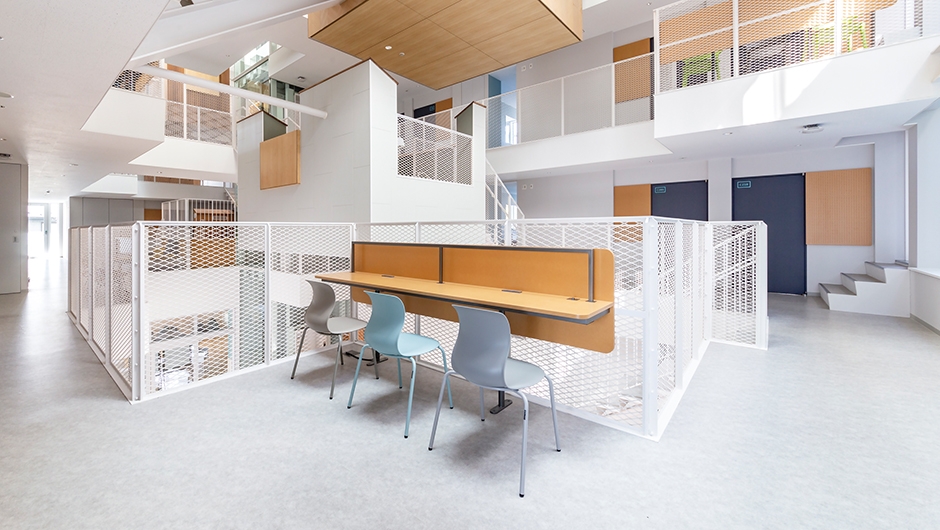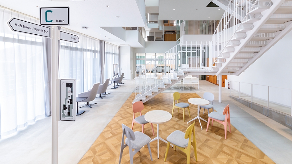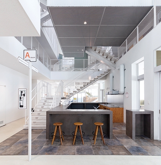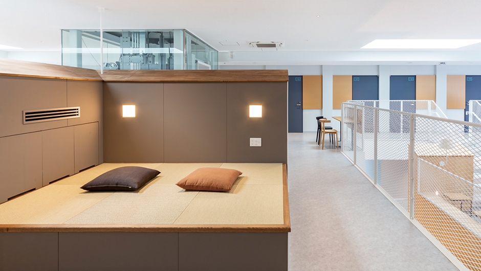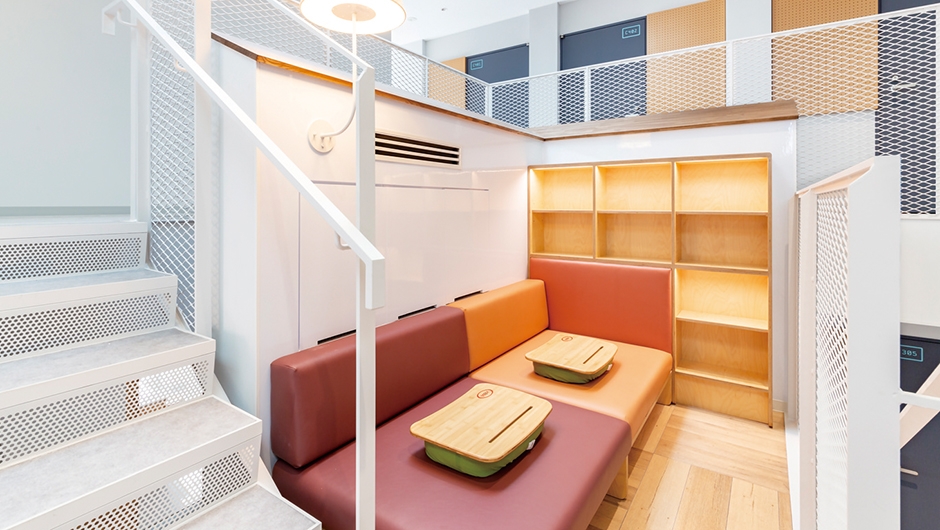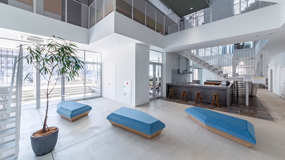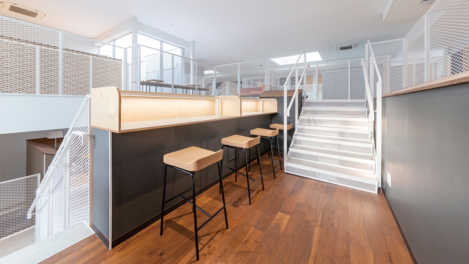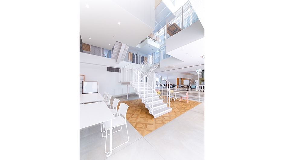また、階段の踊り場には形状や機能が異なる共有スペース「ポット」が点在し、その時の気分によって過ごすポットを選ぶことで、同じ時間を共有する仲間とのコミュニケーションが生まれる場所になっています。