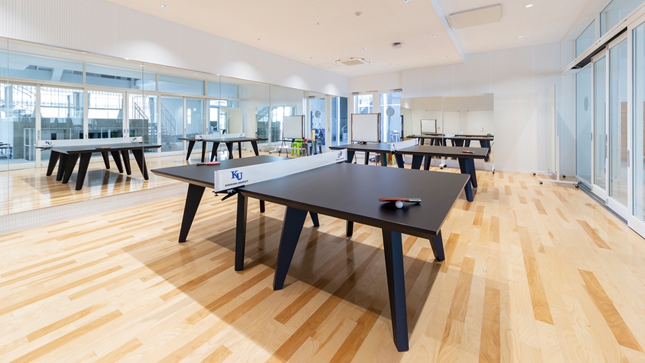 1階 スタジオ2/卓球台テーブル、イス、ホワイトボード、ミラー