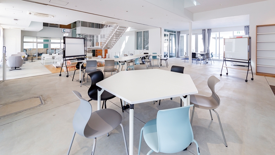Bブロック 1階 リビングストリート/イス:プロ、テーブル:DTN、ホワイトボード