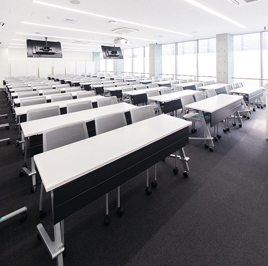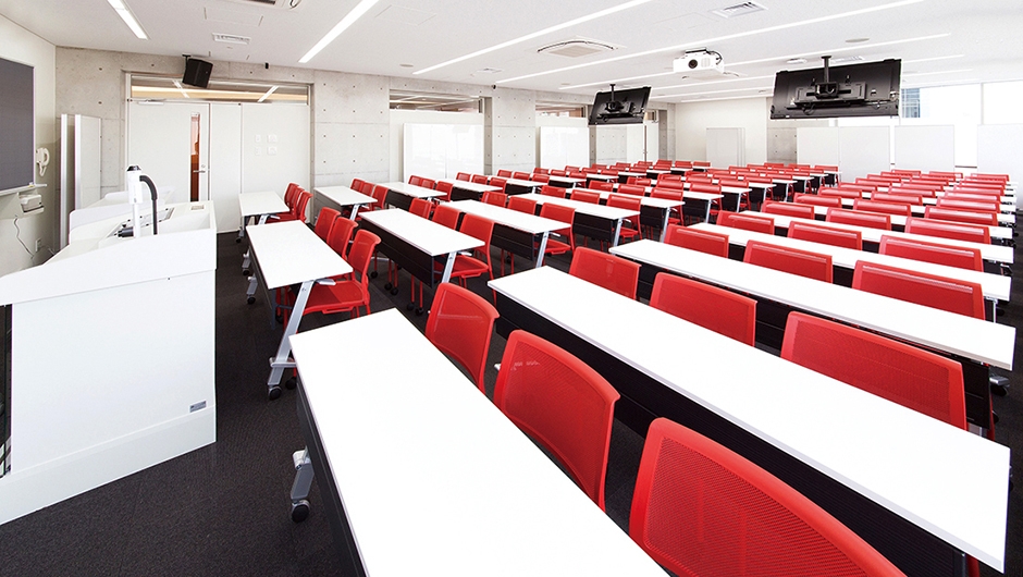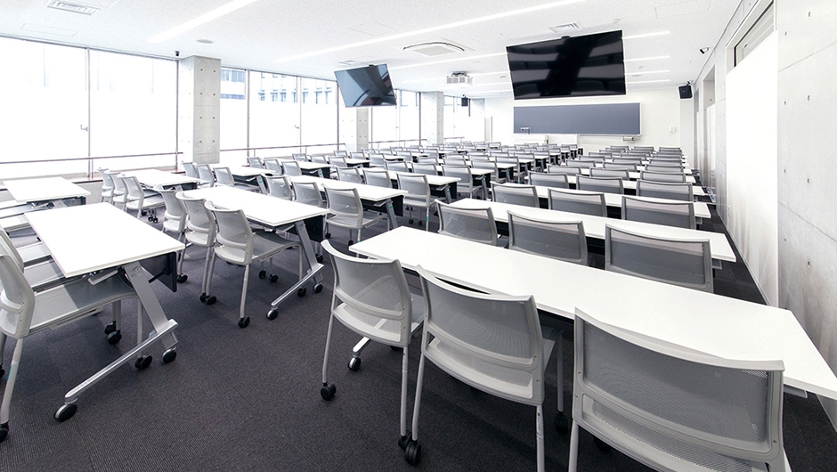 2017年、東洋大学のメインキャンパスとなる白山キャンパスにて、新たに10号館が竣工しました。国際学部と国際観光学部の新設に伴い建設した校舎で、教室フロアと研究室フロアで構成されています。教室は、部屋番号の末尾の数字ごとに、イスのカラーを変えて彩りを豊かにし、活気のある雰囲気を演出しています。