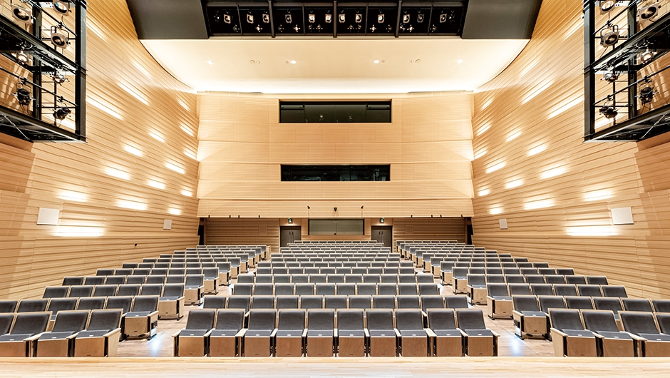 1,500席の大ホールと、300席の小ホールはいずれも優れた音響空間と上質な鑑賞環境を実現し、市民の文化創造活動に利用できる部屋を20室も設置しているのは全国有数となります。