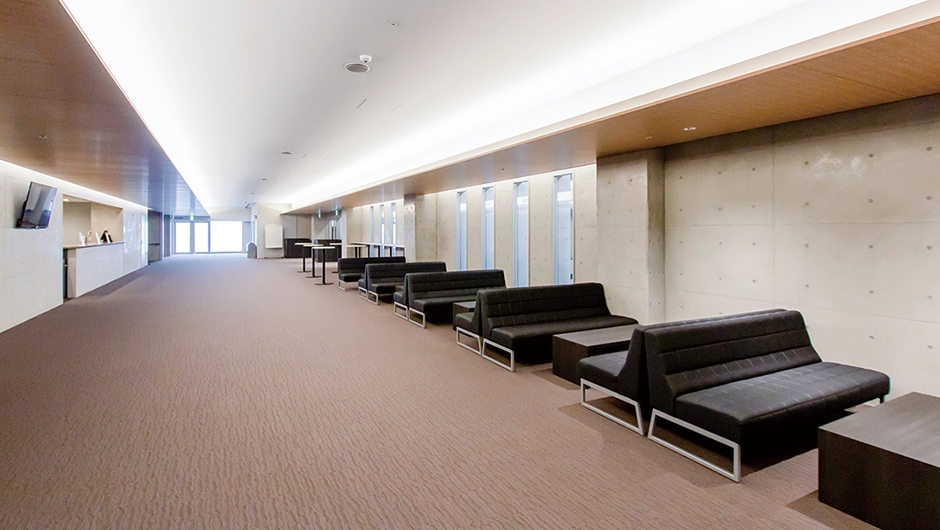 ホワイエ/ソファ、ローテーブル、ハイテーブル、もぎり台