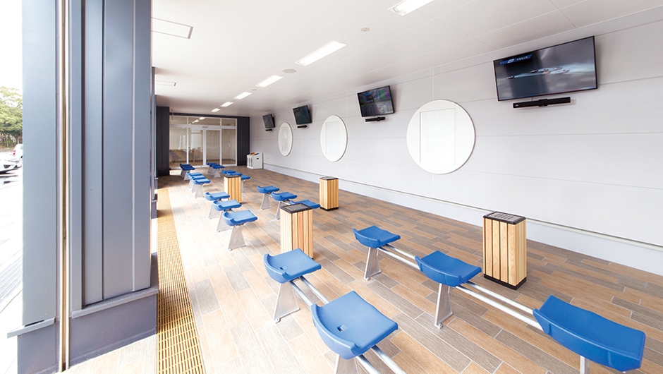 施設内は、気軽に立ち寄れる一般席、ゆっくり観戦できるボックス型の有料席、外に面したテラス席などが用意され、来場者の観戦スタイルに合わせた利用が可能となっています。