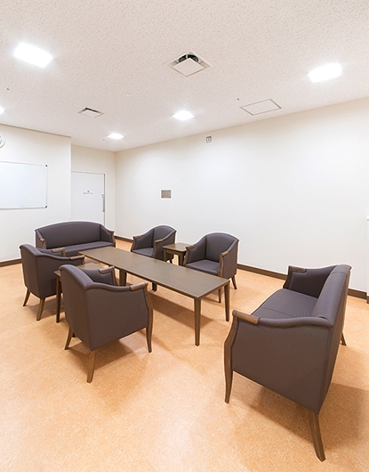 1階 透析待合/ソファ、テーブル、ホワイトボード