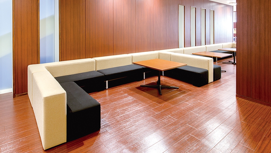 2階 コミュニケーションラウンジ/ソファ:ステップ特注品、テーブル
