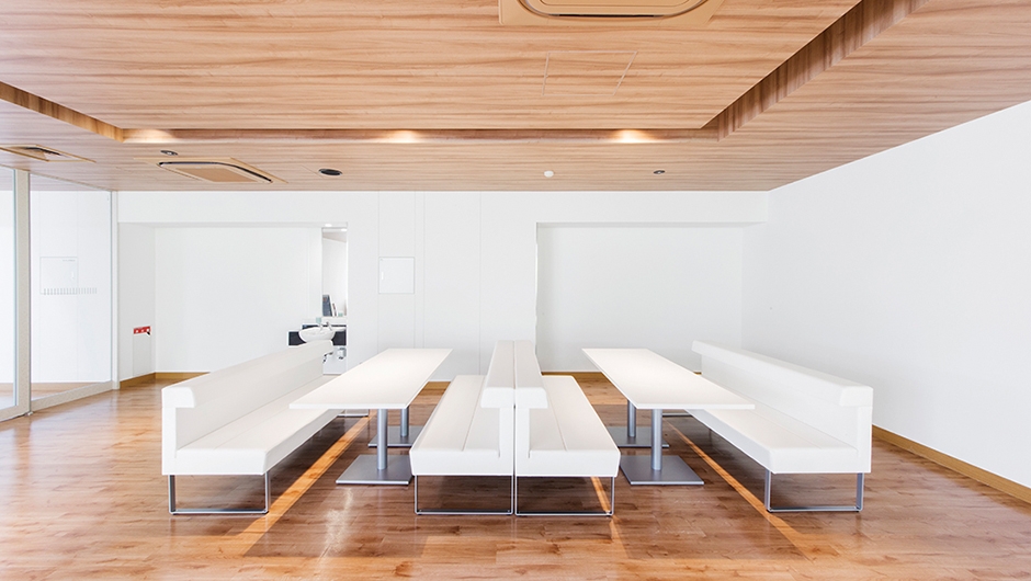 2階 マイティーハウス(食堂)/イス:ティーポ特注品、一部移設イス(座面張替)、テーブル:DT-15、 一部移設テーブル、ソファ:ロフティ特注品