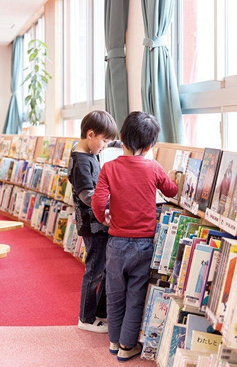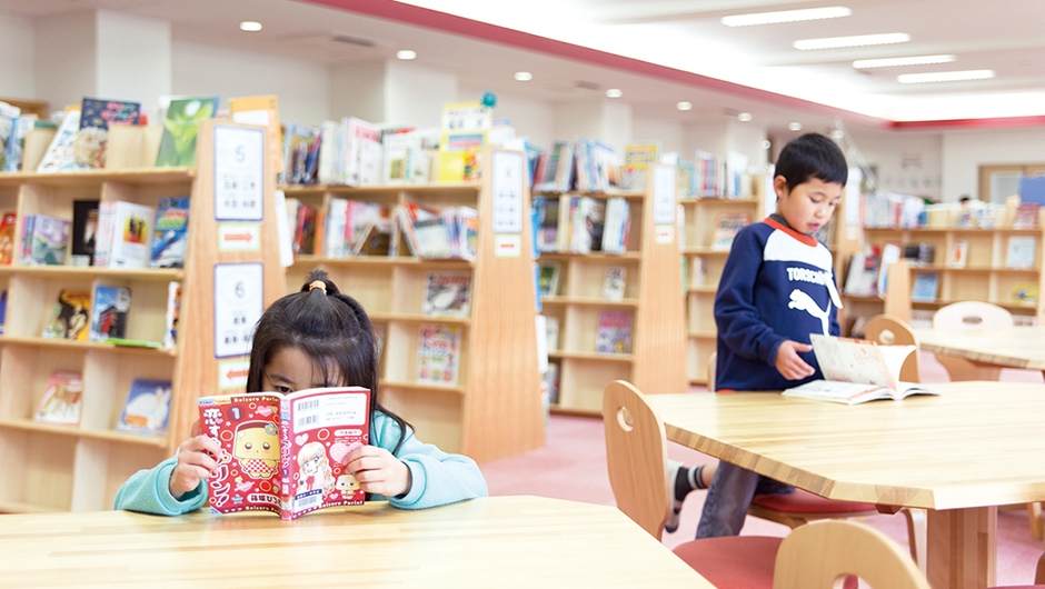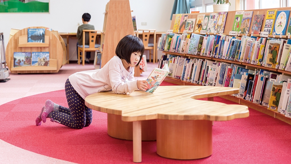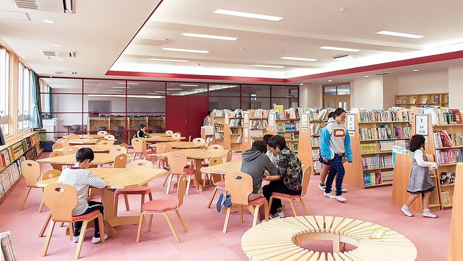 図情報学習センターの図書室には平湯モデルが導入され、入室した瞬間に木の温もりが子どもたちを包み込んでくれます。