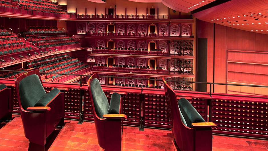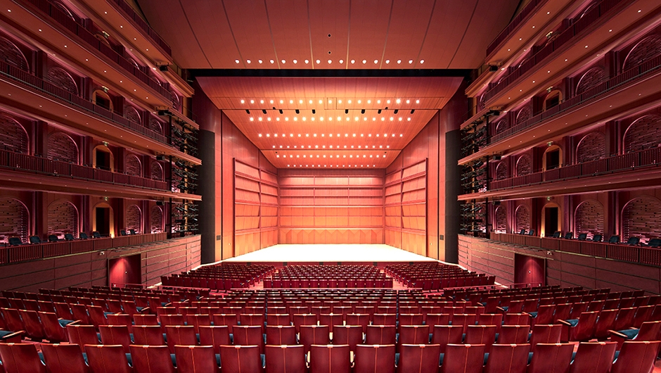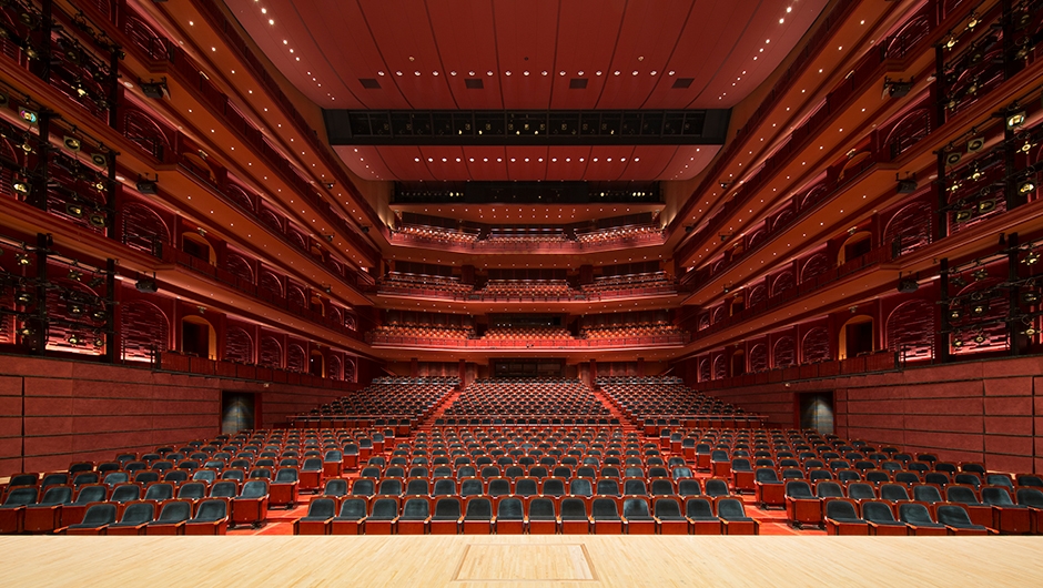 大ホール「ザ・グランドホール」は、音楽を主体としたパフォーミングアーツのための劇場で、コンベンションにも利用されます。約1500席をコンパクトに収めるために、5層のバルコニー席となっています。