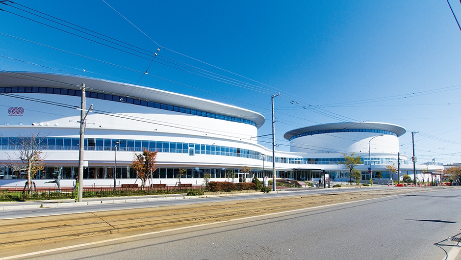 函館アリーナは、北海道新幹線開業を見据え、道南最大のスポーツ・コンベンション施設として、2015年8月にオープン。バスケットボールコート3面分の広さを有し、約5,000人を収容可能なメインアリーナをはじめ、サブアリーナ、武道館、ホール、会議室、スタジオなどを備えています。また、隣接する函館市民会館との間に多目的広場が配置され2つの施設間で相互連携利用が可能となっています。