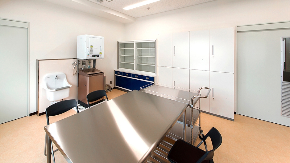 5階 乳幼児家庭実習室/食器、調理器具、製氷機、冷蔵庫、丸イス、掃除用具入れ、分別ダストボックス 他