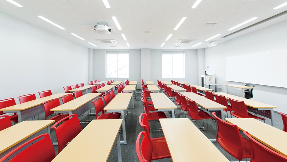 講義室〈2〉/イス:ティーポ、デスク:SCM-300特注品、教卓:S-30特注品、教卓用イス:RC-600