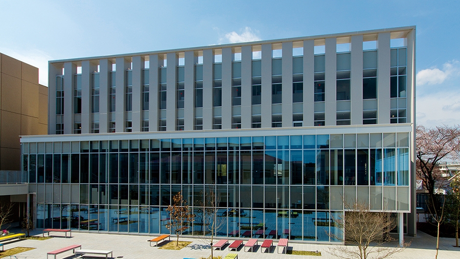 2019年に迎える創立120周年へ向けた記念事業で、渋谷キャンパスに続いて日野キャンパスの教育施設整備が行なわれ、既存施設改修の実施及び第3館が新築されました。第3館の吹き抜けには、大階段が設けられ、プレゼンテーションや講義、イベントなど様々な目的で利用可能で、学生の新しい活動場所となることが期待されています。