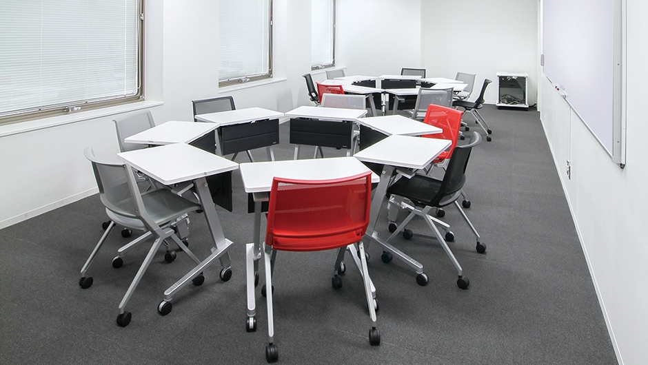 2016年より、経営学部が埼玉の久喜キャンパスから東京都心の神楽坂キャンパス・富士見校舎へ全面移転。ビジネスエコノミクス学科を新設し、従来からの経営学科と2学科体制で新たにスタートしました。経営学部では、PBL(問題解決型学習)など主体的に学べる学習を多く取り入れています。この学びに合わせ、ゼミ室などに可動式デスク・イスを用意し、学生が自由な発想で授業スタイルを展開できるようにしました。