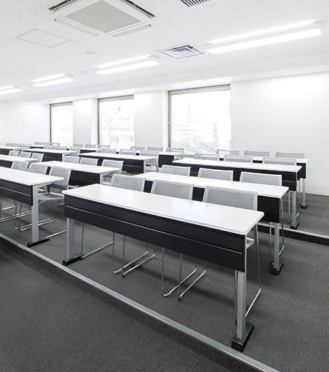 大教室/イス:ティーポ、移動デスク:CTZ、固定デスク特注品