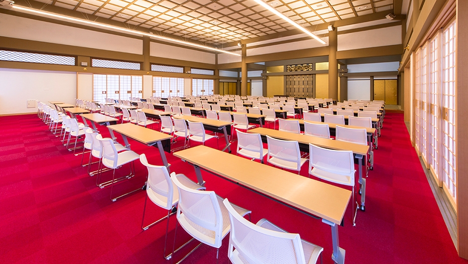 2016年4月、名古屋別院(東別院)において親鸞聖人の御遠忌(ごえんき)法要が厳修されます。御遠忌を迎えるにあたり、別院の境内整備として改修工事が行われました。対面所2階大間の改修では、畳からカーペットに張替えられ、新たに机とイスを設置。多目的な会議・行事で使用できるようになりました。