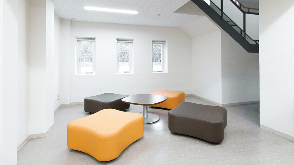 1階 図書室/スツール:STEP、BOCO、テーブル:DECO