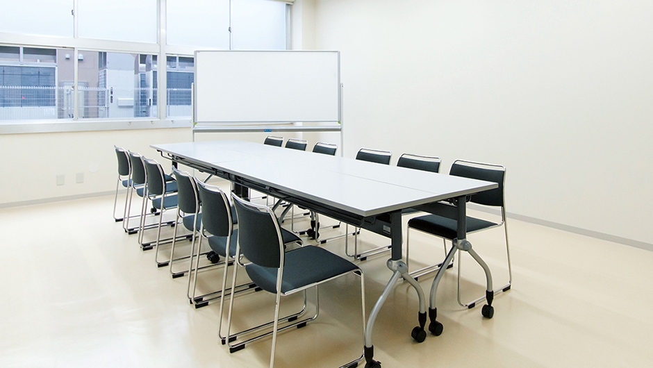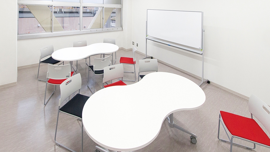 1階 演習室/イス:カラリー、テーブル:インテ、ホワイトボード:BN