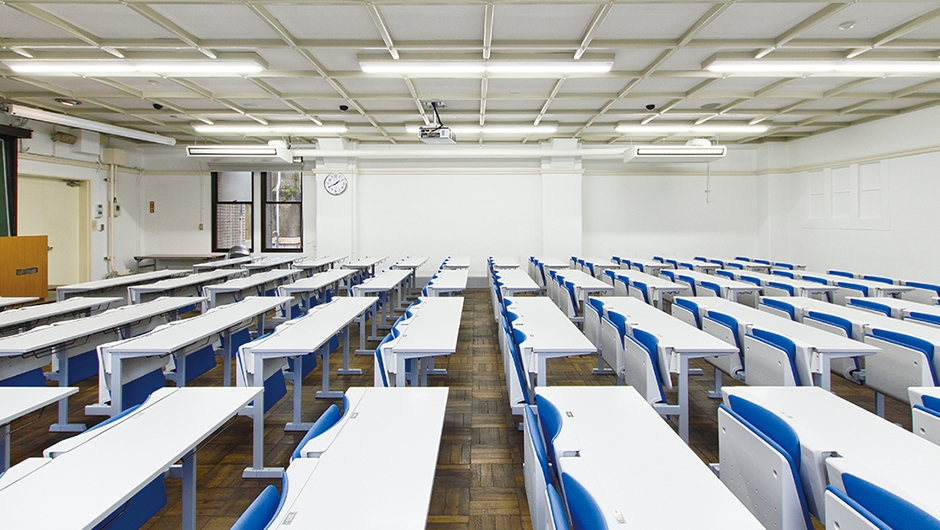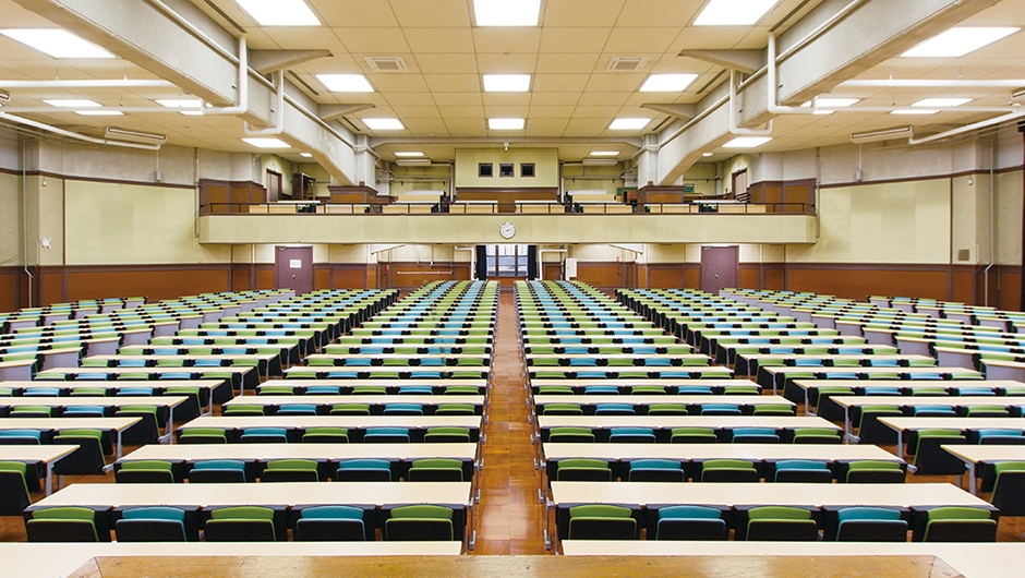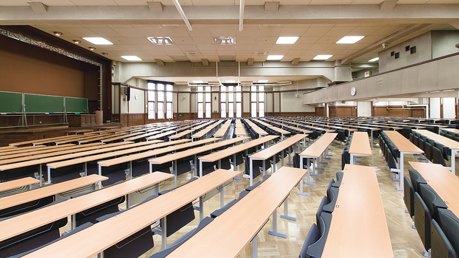 東京大学法学部の歴史ある建物の外形は活かしつつ、内装や家具をリニューアルすることで学習環境の向上が図られました。キャンパス内に700名以上収容できる教室が2部屋(25番教室・31番教室)あるのが特徴で、同等規模の教室を有する施設は数少ないため、センター試験などの試験会場として度々利用されます。31番教室は、試験時に1階席のみ使用で、1席おきに着席しても最大424名収容可能。また、床タイルの張替えも実施され、空間が明るくリフレッシュしました。